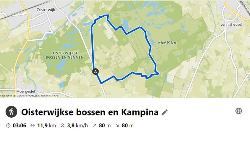 Vanmorgen om 10 uur vertrokken vanaf natuurpoort Klein Oisterwijk voor een rondje van ca 14 km door de Oisterwijkse bossen en de Kampina. Een leuke route door Frank uitgezet. Soms wat drassig, soms te nat en dus omdraaien voor een alternatief!! En nog belangrijker een heel leuk wandelgezelschap. Ik heb weer met volle teugen genoten.