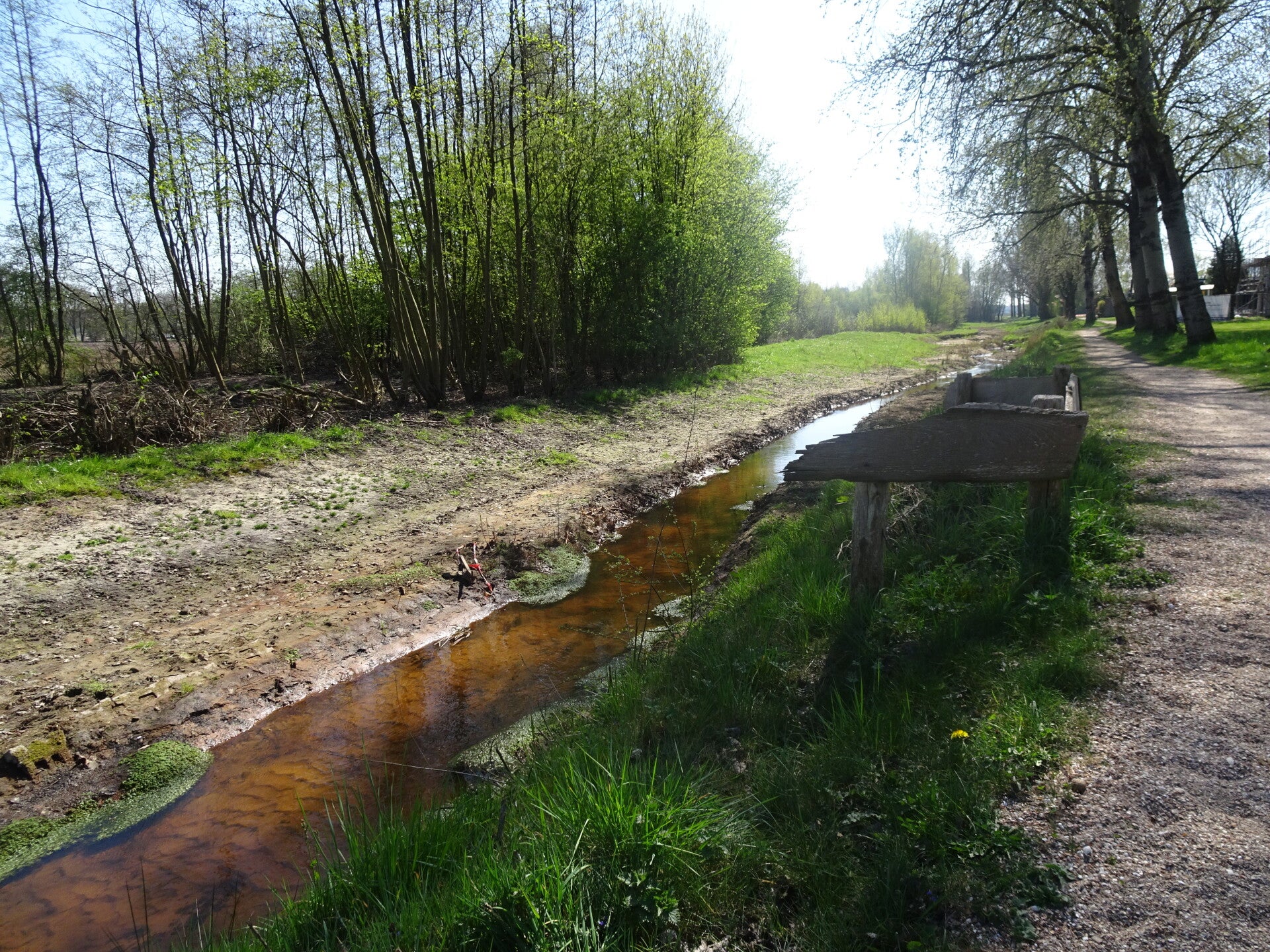 Een grote diversiteit in het landschap wat ons voorgeschoteld werd. Bos en weilanden maar ook akkers en los zand. Een paar km langs beekje "de Zandleij" gelopen , dat weer heel wat anders dan door de bossen. Beekje de Zandleij Deze beek ontstaat ten noorden van Tilburg en loopt ten noorden van Udenhout en langs kasteel Zwijnsbergen bij Helvoirt naar het Drongelens Kanaal onder Cromvoirt.
