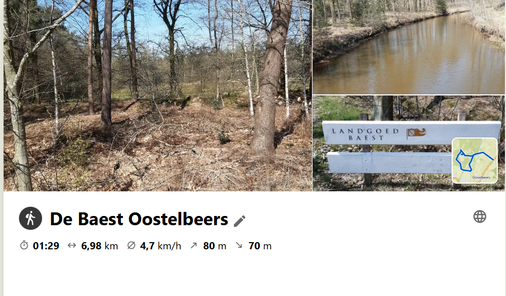 vanmorgen met de woensdagwandelgroep een rondje door het Riels laag en een stukje over de Hei gelopen. Prachtig wandel weer en... zo dachten er meer over want het was er best wel een beetje druk. zo kwamen we Jozef van Erven tegen die met een groepje de natuur aan het verkennen waren op de rechte hei. na de wandeling gezellig samen koffie gedronken in de Leybron en daarna weer huiswaarts gekeerd. Vanmiddag samen met mijn wandelmaatje Claudia op landgoed De Baest gelopen. Een prachtige omgeving met van alles en nog wat te zien maar vooral de intense rust die er heerst. kortom een dag vol wandelgenot.