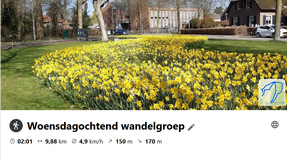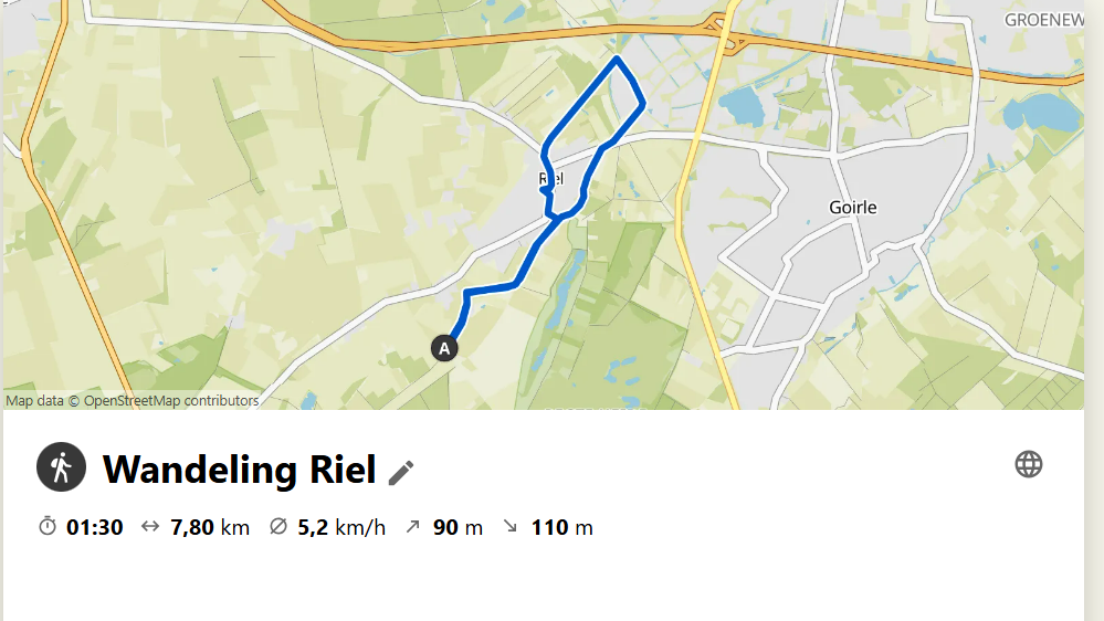 Vanmorgen met de wandelgroep een rondje gedaan en nadien koffie gedronken natuurlijk en gezellig wat bij kunnen kletsen en daarna weer naar huis gelopen. Thuis aangekomen bleek dat mijn komoot app maar de helft van de route had geregistreerd en om dus te controleren of de app nog wel betrouwbaar was heb ik vanmiddag een rondje rond Riel gelopen en die klopte wel. Ik kwam onderweg Jo en Mientje Maes nog tegen die ongeveer op het einde van hun middag wandeling waren. Stukje Bels Lijntje, La de Dorpstraat in en dan nog ergens een keer links en dan waren ze weer thuis. Ik moest nog effe een stukje verder want ik begon net. Prachtig weer om buiten te mogen vertoeven.