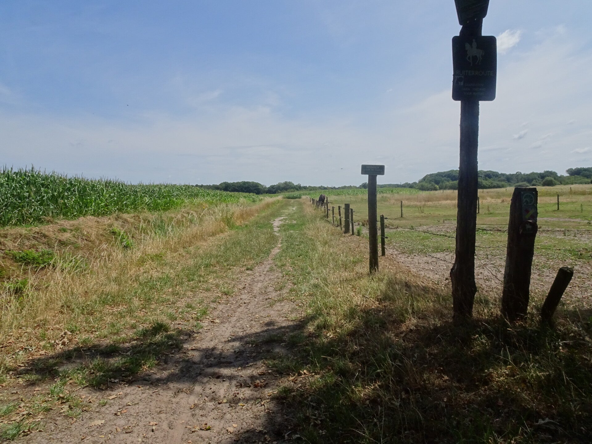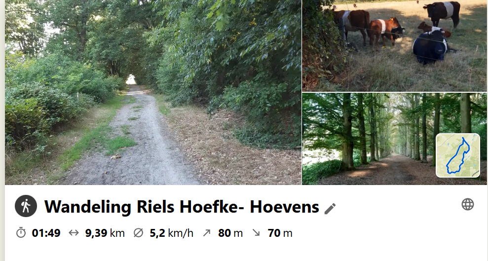 Ik had het plan opgevat om vanmiddag naar het stadsbos 013 te gaan wandelen en aldaar mooie Siberische eekhoorntjes te gaan spotten. Maar eenmaal op weg kwam ik tot de conclusie dat het misschien verstandiger was om een andere afslag te nemen vw de warmte, 26 gr, Niet dat ik daar niet tegen kan maar als je in het Bos aangekomen bent, dan ben je nog niet half weg en dat was net even te veel. Dus de afslag Riel en de Katsbochten genomen en door het Riels Laag weer huiswaarts met toch weer 10 km op de teller. Goed om te doen onder de bomen en in de schaduw