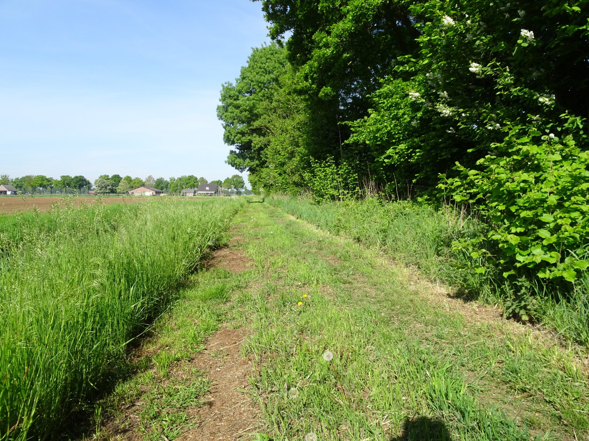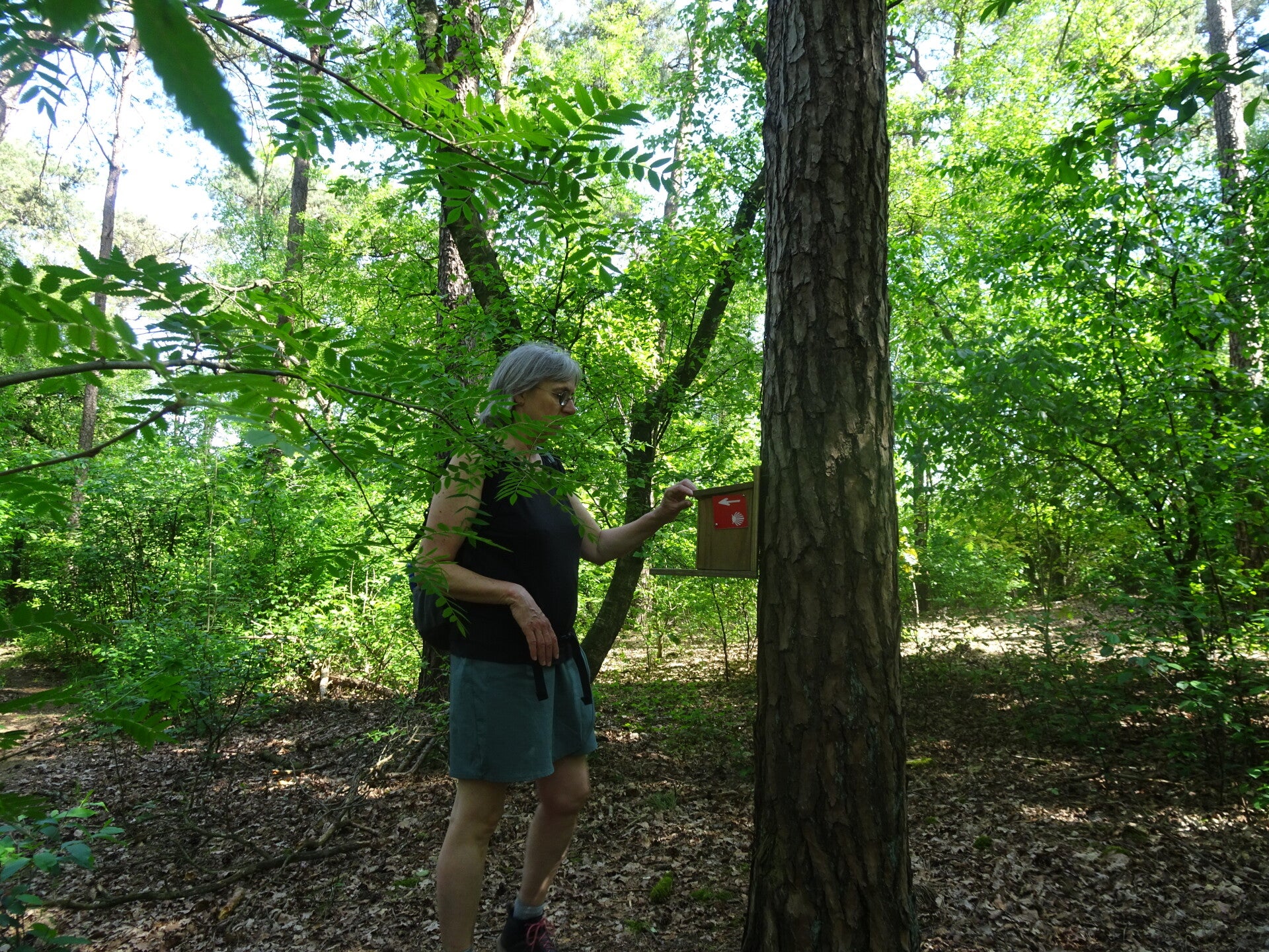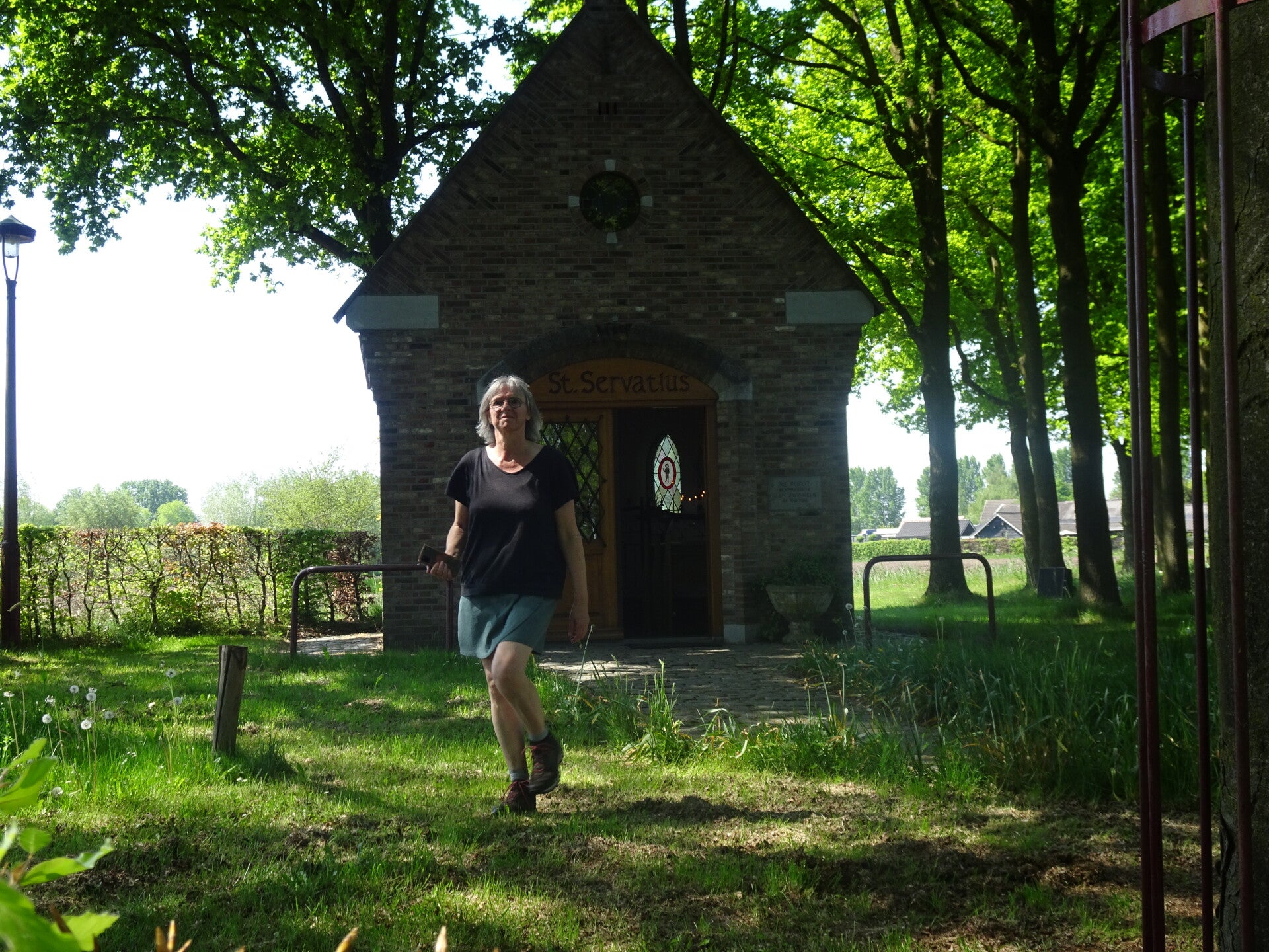 Vandaag staat wandeltocht 3 van de Camino Brabant op de planning. Ik wil alles met het Openbaar vervoer doen en dat heeft consequenties natuurlijk. Mijn startpunt is de St Lambertus kerk in Veghel. En om die reden dat ik wat moet reizen om 06.00 uur in Riel op de bus gestapt en al bussend en treinend en weer met de bus kom ik om 07.30 uur in Veghel aan. een uur te vroeg maar een bus later is geen optie want dan kom ik te laat op de afgesproken tijd van 08. 30 uur. Jolanda, mijn wandelmaatje voor deze dag, was ook mooi op tijd 08.20 uur. Vandaar uit vertrekken we vol goede moed richting Son en Breugel, niet wetende wat ons nog te wachten staat maar dat is het leuke van pelgrimeren. Na wat km's gelopen te hebben komen we voor de eerste serieuze uitdaging. We komen in het buitengebied van Mariahout, waar we ook een prachtig hondenhotel passeren met heel veel muziek van blaffende honden. Leuk voor passanten. minder leuk mbt de producerende decibels. Het hondenhotel gepasseerd gaan we links af een landbouwweg op. We komen nu op het einde van deze weg en hier is een T splitsing met zandwegen. Oeps wat nu? Moeten we L.af of R.af. De App geeft aan dat we rechtdoor moeten over een bewerkte akker lopen lijkt ons niet logisch en dus kiezen we voor R.af. Natuurlijk verkeerde keuze. We lopen 1,5 km op dit pad en komen op een verharde weg uit. Hier ook geen bord of peil en dus maar weer rechtsomkeer gemaakt. hadden dus toch L.af gemoeten. Dat doen we dat dan maar, we zijn nu toch bezig. we lopen inmiddels al een aantal km's om de route heen en snappen er helemaal niks meer van maar via wat omzwervingen komen we toch weer op de route terecht. Wat blijkt nu, op die bewuste T kruising hadden we dus rechtdoor gemoeten over het akkerland. De boer heeft daar het wandelpad omgeploegd en dus voor ons heel onduidelijk omdat wij niet de brutaliteit bezitten om over andermans eigendommen te gaan lopen zonder toestemming.
