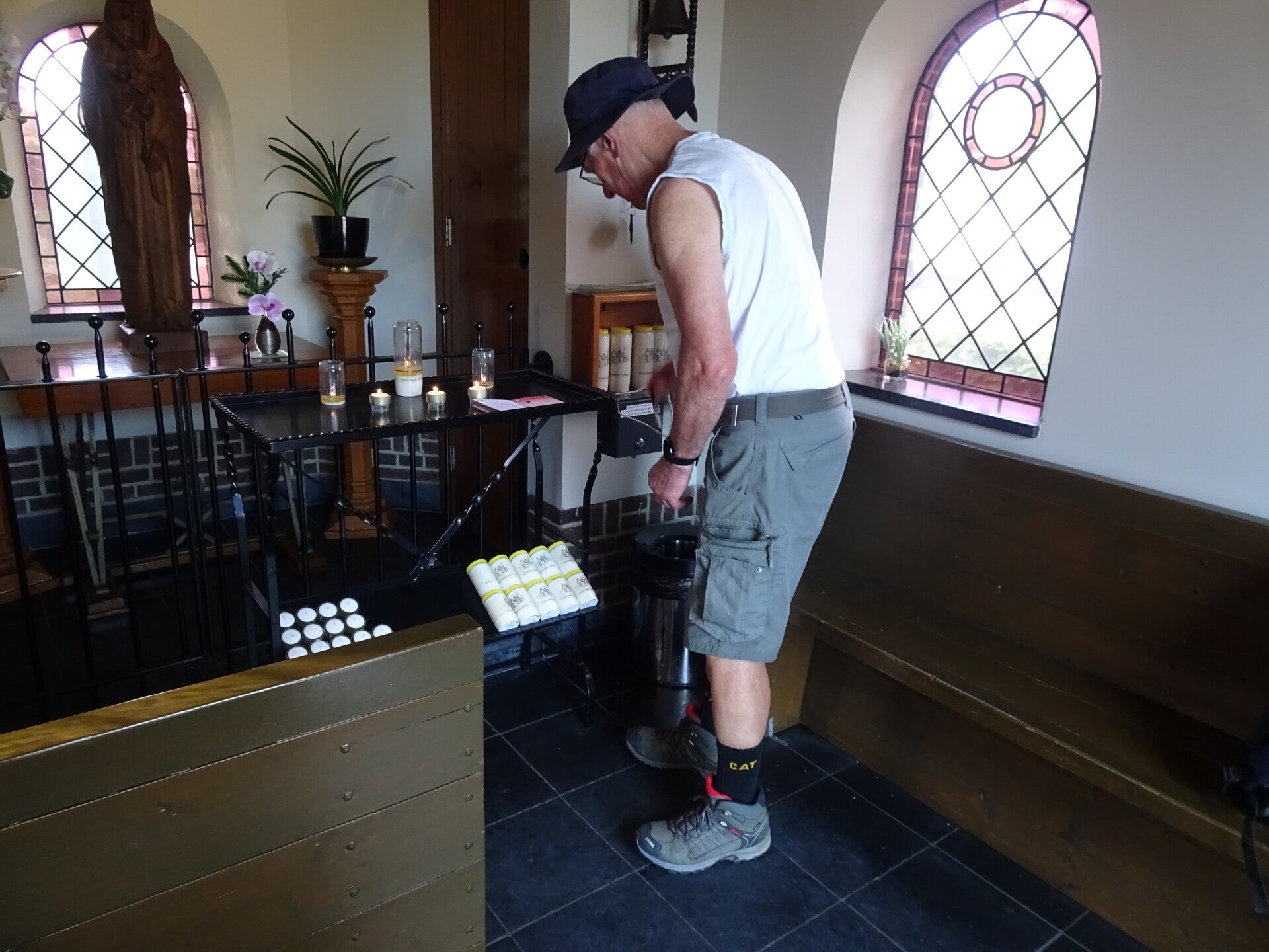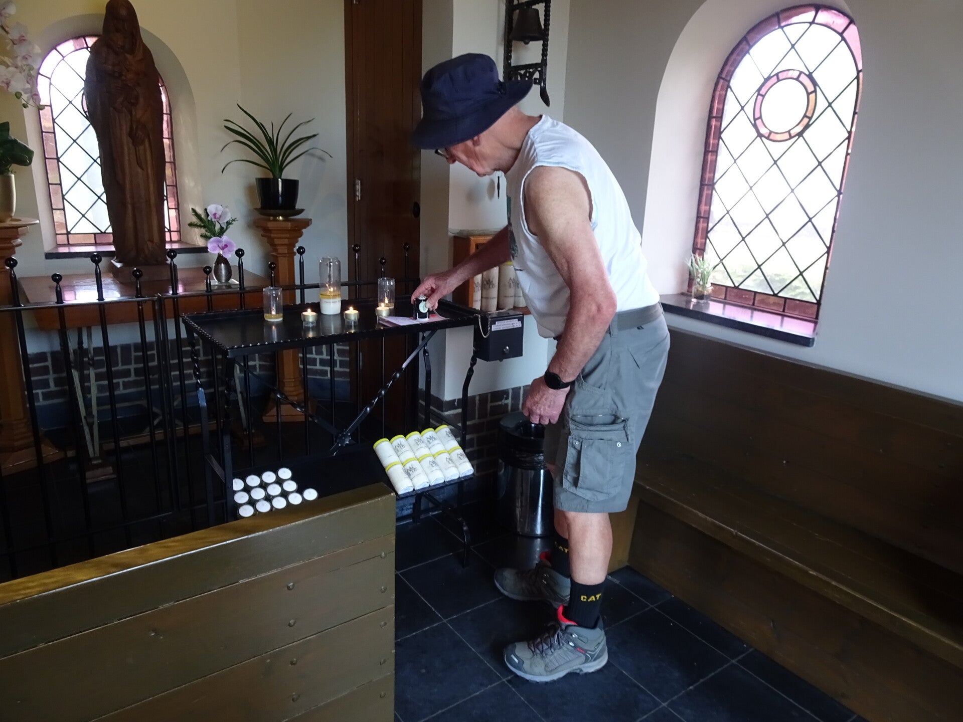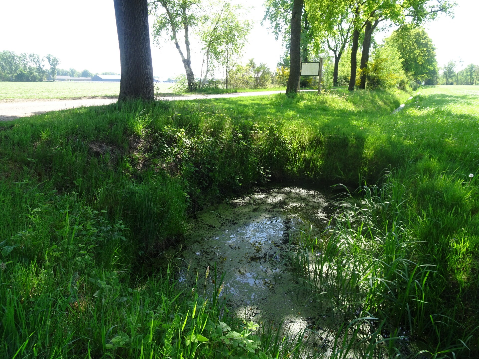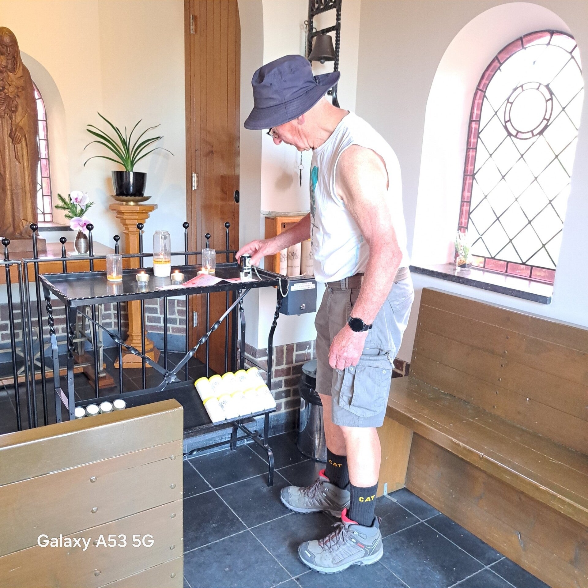 Vandaag staat wandeltocht 3 van de Camino Brabant op de planning. Ik wil alles met het Openbaar vervoer doen en dat heeft consequenties natuurlijk. Mijn startpunt is de St Lambertus kerk in Veghel. En om die reden dat ik wat moet reizen om 06.00 uur in Riel op de bus gestapt en al bussend en treinend en weer met de bus kom ik om 07.30 uur in Veghel aan. een uur te vroeg maar een bus later is geen optie want dan kom ik te laat op de afgesproken tijd van 08. 30 uur. Jolanda, mijn wandelmaatje voor deze dag, was ook mooi op tijd 08.20 uur. Vandaar uit vertrekken we vol goede moed richting Son en Breugel, niet wetende wat ons nog te wachten staat maar dat is het leuke van pelgrimeren. Na wat km's gelopen te hebben komen we voor de eerste serieuze uitdaging. We komen in het buitengebied van Mariahout, waar we ook een prachtig hondenhotel passeren met heel veel muziek van blaffende honden. Leuk voor passanten. minder leuk mbt de producerende decibels. Het hondenhotel gepasseerd gaan we links af een landbouwweg op. We komen nu op het einde van deze weg en hier is een T splitsing met zandwegen. Oeps wat nu? Moeten we L.af of R.af. De App geeft aan dat we rechtdoor moeten over een bewerkte akker lopen lijkt ons niet logisch en dus kiezen we voor R.af. Natuurlijk verkeerde keuze. We lopen 1,5 km op dit pad en komen op een verharde weg uit. Hier ook geen bord of peil en dus maar weer rechtsomkeer gemaakt. hadden dus toch L.af gemoeten. Dat doen we dat dan maar, we zijn nu toch bezig. we lopen inmiddels al een aantal km's om de route heen en snappen er helemaal niks meer van maar via wat omzwervingen komen we toch weer op de route terecht. Wat blijkt nu, op die bewuste T kruising hadden we dus rechtdoor gemoeten over het akkerland. De boer heeft daar het wandelpad omgeploegd en dus voor ons heel onduidelijk omdat wij niet de brutaliteit bezitten om over andermans eigendommen te gaan lopen zonder toestemming.