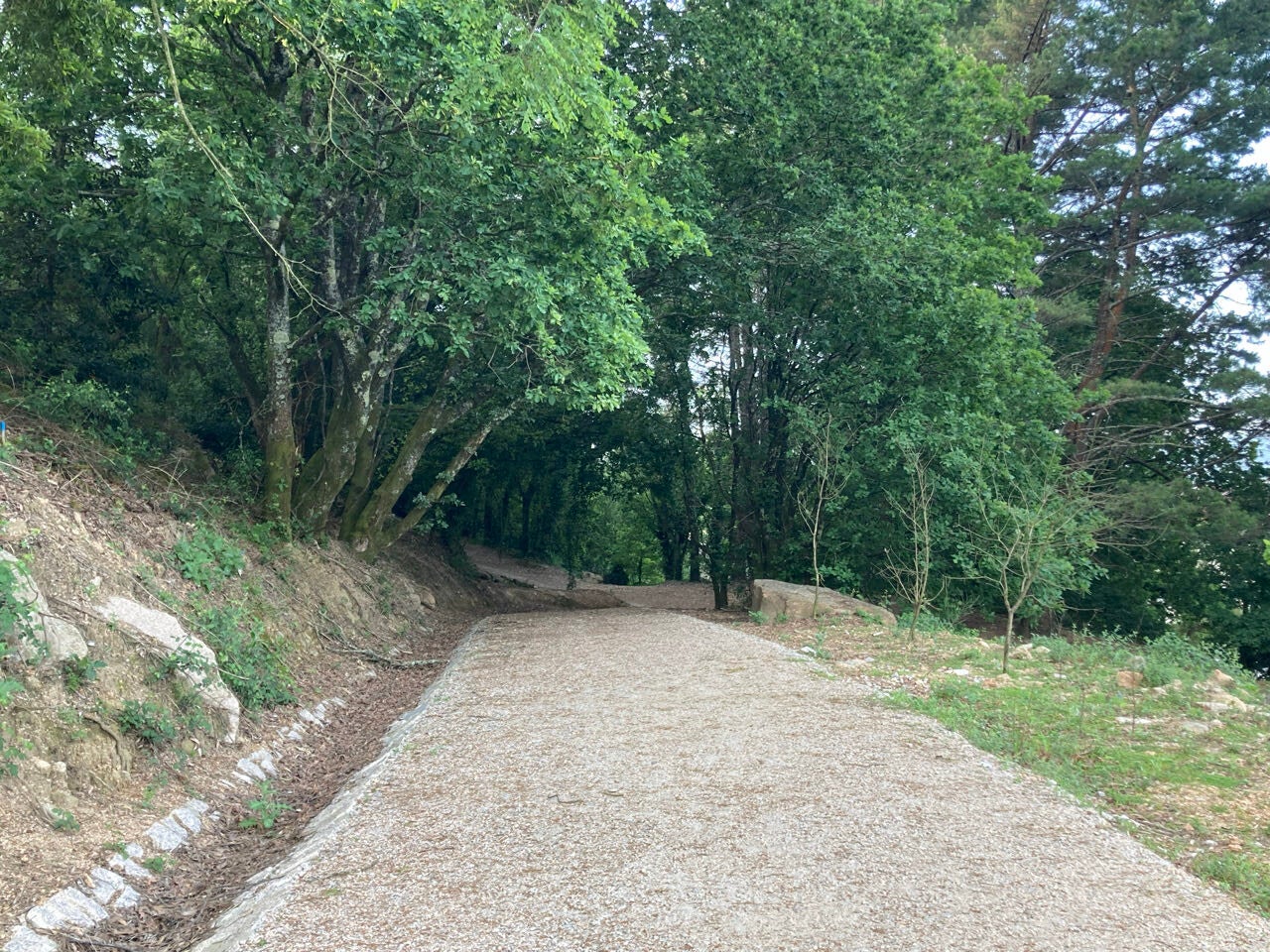 Bij een gedeelte van de route van vandaag was er een geasfalteerd voetpad. Dat liep wel makkelijk. We hebben maar één pad gehad vandaag waar we op oneffenheden moesten letten. Dat is ook wel eens anders geweest. Het 99.84 km punt. Niet te geloven dat er geen 100 km paaltje is….100,20 km was er wel…. Omdat we nu in de laatste 100 km van Santiago de Compostela zitten, moeten we nu per dag minimaal twee stempels bemachtigen. Lukt dat, dan kunnen we in Santiago de Compostela de ‘Compostela’ ophalen.