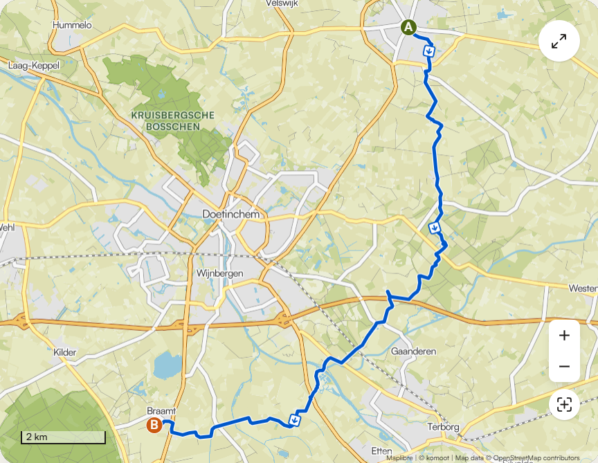 Na het ontbijt hebben we onze spullen gepakt en hebben we afgerekend voor onze overnachting en zijn vol verwachting weer op pad gegaan naar ons volgende avontuur en dat was Braamt waar ik zou overnachten bij Willem en Yvonne Mijn dochter ging na deze etappe weer naar huis. We waren natuurlijk weer veel te vroeg in Braamt en dan moet je weer even uitvogelen wat het handigste is. We waren er al redelijk snel uit. We hebben onze tocht voortgezet van Braamt naar 's-Heerenberg, daar woont mij dochter 2 dagen per week, en van 's-Heerenberg heeft mijn dochter me weer terug naar Braamt gebracht, naar mijn overnachtingsadres. Ik heb afscheid van mijn dochter genomen en haar bedankt voor 2 geweldige dagen die we met elkaar hebben mogen beleven met een stralende zon en prachtige natuurelementen, van alles wat en dat is het mooie aan de natuur! Ik word allerhartelijkst ontvangen door de gastheer en maak kennis met de andere gasten, allemaal Pieterpad wandelaars, enkele ervan had ik al eerder gezien onderweg, niet wetende dat we elkaar nog vaker tegen zouden komen, dus bij Willem en Yvonne treffen we elkaar weer. We hebben samen een gezamenlijke warme maaltijd genuttigd die de gastheer serveerde en ook gekookt had, een hele goede kok, beter dan ik want ik kan niet koken helaas!! Na gegeten te hebben en nog wat nagepraat te hebben ben ik naar mijn kamertje gegaan en ben me ten ruste gaan begeven. Ik had geen zin meer om nog een verslag van de dag te schrijven en dus moest dat 7 dagen na dato nog gebeuren.