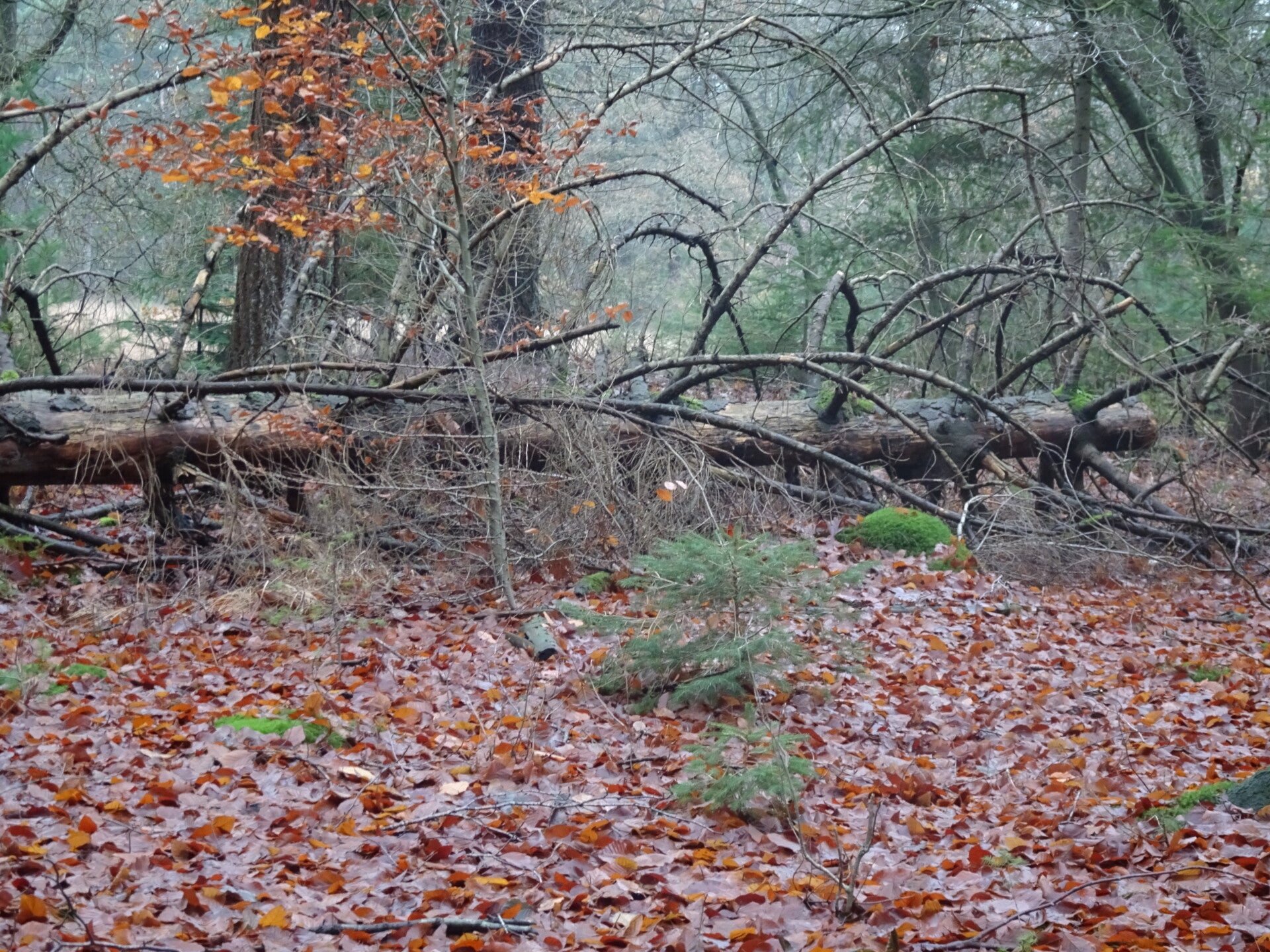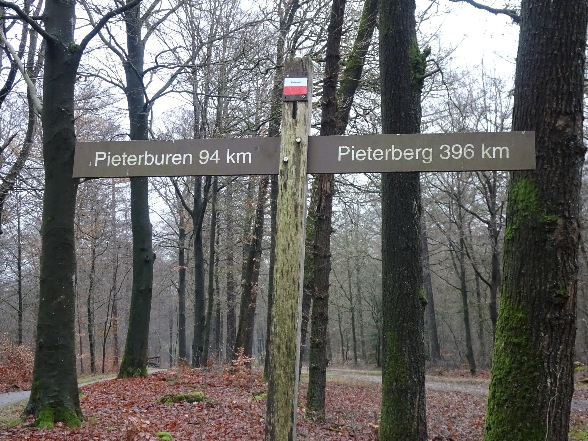 Zaterdag 29 november 2025. 6de etappe van Noord Sleen-Schoonloo. Na een nacht heel slecht geslapen te hebben ben ik vanmorgen om 6 uur uit mijn bed gegaan. Ik heb me gedoucht en daarna mijn spulletjes bij elkaar gezocht en toen was het inmiddels 07.15u dan heb ik nog een kopje thee gezet En wacht rustig af totdat mijn gastvrouw het ontbijtje komt brengen nou dat loog er echt niet om hoor, een heel dienblad vol met allemaal lekkers zoals 3 sneetjes bruine brood twee bolletjes wit brood met kaas twee appels twee gekookte eitjes 3 stukjes smeerkaas. Veel te veel om het allemaal op te eten en daarom had ik gevraagd of, wat ik niet op at mee mocht nemen voor onderweg, dat was geen probleem, dank daarvoor! Ik wacht tot het wat lichter is geworden buiten en ben vol goede moed weer op stap gegaan richting Schoonloo. Ik moet eerst 1,5 km lopen voor ik weer op de route aan ben en daarna gaat alles weer als vanzelf. Weinig Pieterpad wandelaars. Zou dat komen omdat ik zo vroeg ben? Geen idee, we wachten het maar af wat deze dag weer brengen zal. Het is prachtig wandelweer dus daar zal het wel niet aan liggen. Ik had me goed aangekleed bij mijn vertrek want het advies is ”kleed je aan in lagen zodat je wat uit kan doen als het te warm is” Nou dat was een goede raad want zo rond het middaguur kreeg ik het wel heel erg warm en dus ontdeed ik me van een laagje kleding , mijn thermoshirt, en laat dat nou net de onderste laag zijn. Ik sta midden in de bossen ,dus geen probleem! Ik heb me net ontdaan van mijn bovenkleding, hoor ik opeens roepen ”ohhhh” van 2 dames die daar net passeren en ook het Pieterpad aan het lopen waren. Dat heb ik nou weer! Het waren ook meteen de 1ste 2 wandelaars die ik zag deze morgen. Na me weer opgetuigd te hebben ben ik weer verder gaan lopen. Een verademing dat mijn onderste laag van mijn kleding in de rugzak was verdwenen. In de loop van de middag kom ik steeds meer wandelaars tegen, ja tegen, want iedereen loopt naar Sleen en ik naar Schoonloo. Onderweg nog een praatje gemaakt met een dame die ik een dag daarvoor in Schoonloo in een restaurant had gezien maar niet gesproken, we zaten te ver van elkaar. Zij kwam uit de provincie Zeeland, het eiland Schouwen Duivenland, Ze vertelde dat haar man een spierziekte had, familie van ALS maar een hele langzame vorm. Zij was al vanaf maandag het Pieterpad aan het lopen en vandaag kwam haar man haar vergezellen en bleven ze overnachten, lopen kosten hem te veel energie.