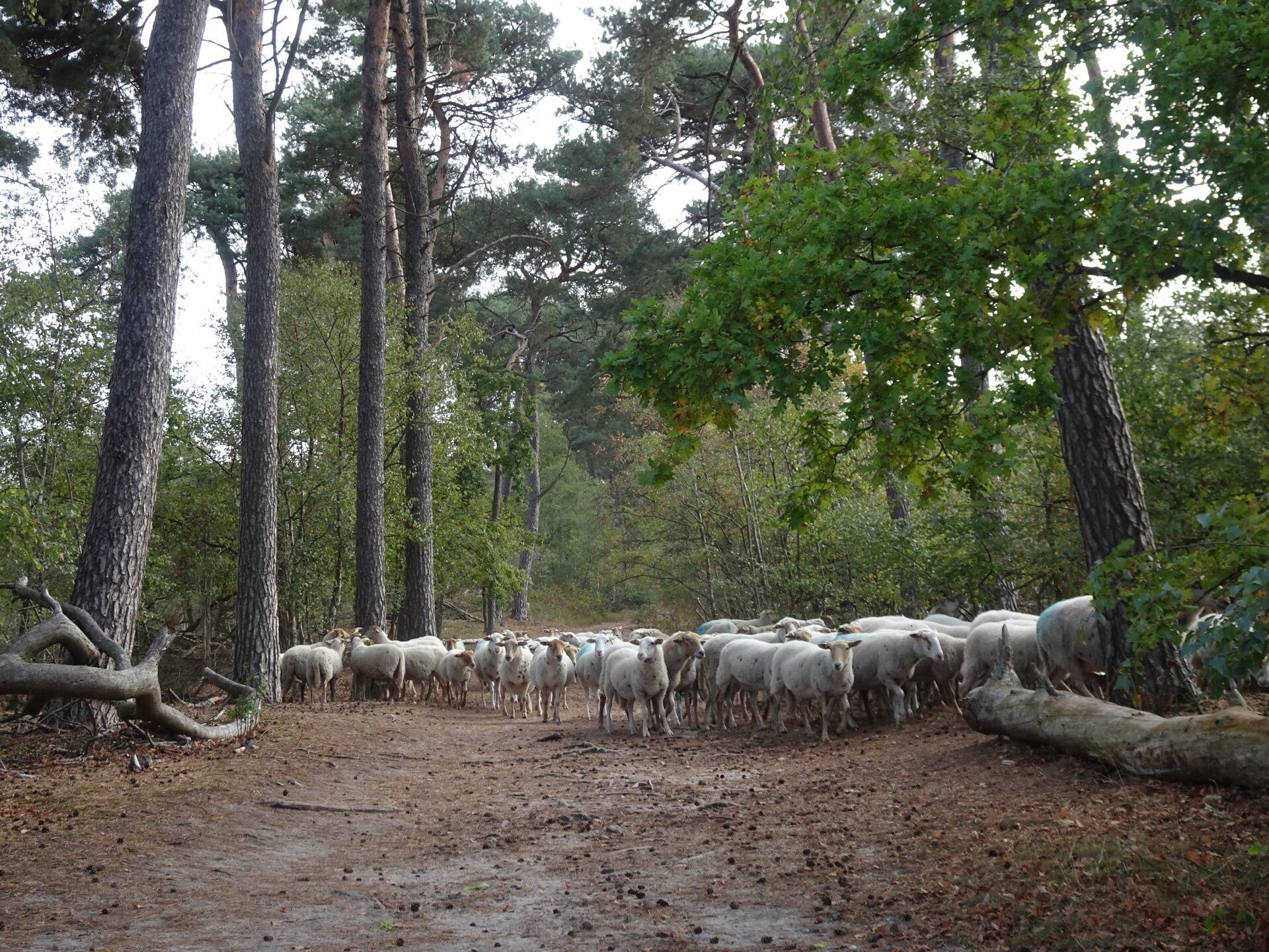 De mannetjes hadden geen tijd om te eten want die moesten vrouwtjes versieren. Volgens de herder vielen de mannetjes in een paar weken tijd 16 kg af door heel dat gerak achter die vrouwkes aan. Eigen schuld!! Met de nodige informatie in onze rugzak hebben we ons pad weer vervolgd totdat we op een gegeven moment bij een pannenkoekenhuis aankwamen en daar even ons rust momentje genomen met een Cappuccino en een Bosche bol. daarna onze wandeling weer voortgezet en zo kwamen we rond 14.30 uur(denk ik) weer op de plaats waar we de eerste auto (gratis) hadden geparkeerd aan. In de auto gestapt en toen weer terug naar Malden gereden waar Dorothée haar auto (gratis) had geparkeerd. Dorothée blijft in Malden overnachten bij vrienden op de fiets omdat ze morgen nog een wandeling gaat doen. We hebben afscheid genomen van elkaar en van deze bijzondere ontmoeting en uitgesproken dat samen wandelen zeker voor herhaling in aanmerking komt